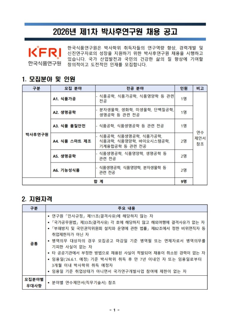 외부공지 2026년 제1차 박사후연구원 채용 공고 2026.04.08 조회수 811 취업지원팀 share facebook twitter kakaotalk 카카오톡 앱이설치된 모바일 기기에서만공유 가능합니다. https://www.syu.ac.kr/cmjr share 복사 facebook twitter kakaotalk 카카오톡 앱이설치된 모바일 기기에서만공유 가능합니다. 이전글 글이 없습니다. 다음글 한국유나이티드제약 4월 개량신약영업팀 채용 안내 목록