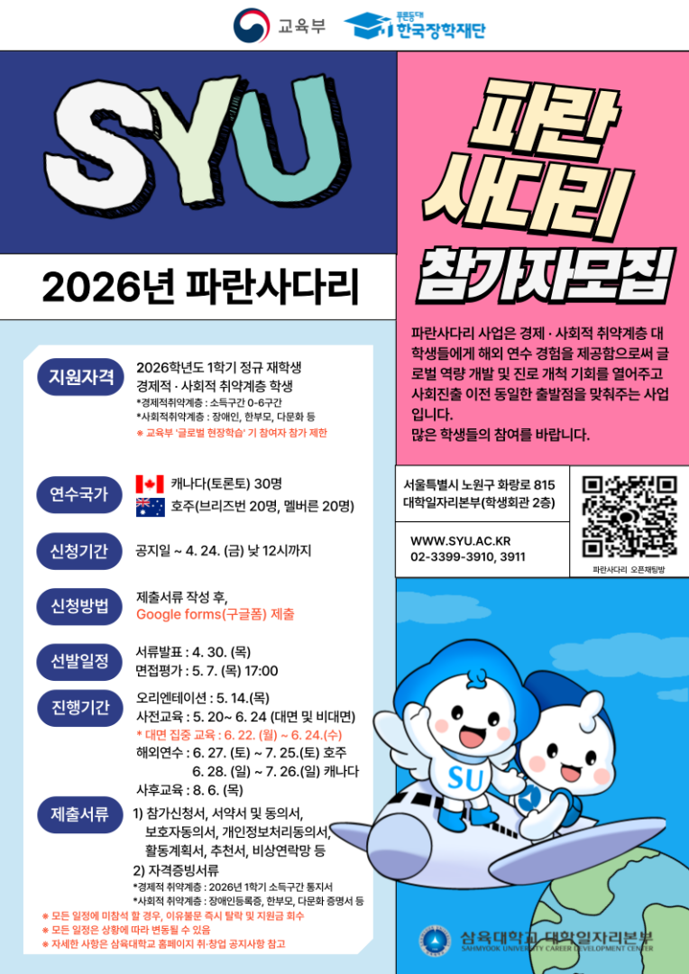 사업설명회 2026. 4. 15.(수) 12:00 삼육대학교 국제교육관 3층 장근청홀