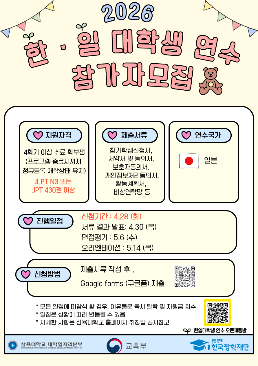 포스터 포스터 2026.04.14 조회수 0 취업지원팀 share facebook twitter kakaotalk 카카오톡 앱이설치된 모바일 기기에서만공유 가능합니다. https://www.syu.ac.kr/?p=243554 share 복사 facebook twitter kakaotalk 카카오톡 앱이설치된 모바일 기기에서만공유 가능합니다. 이전글 글이 없습니다. 다음글 글이 없습니다. 목록