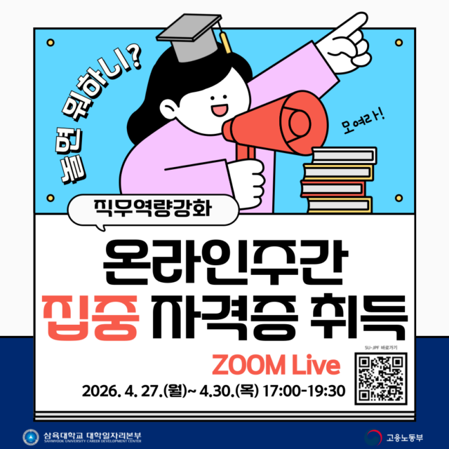 직무역량강화교육 「비즈니스컨설팅전문가 외 3과정」 001 직무역량강화교육 「비즈니스컨설팅전문가 외 3과정」 001 2026.03.20 조회수 0 취업지원팀 share facebook twitter kakaotalk 카카오톡 앱이설치된 모바일 기기에서만공유 가능합니다. https://www.syu.ac.kr/?p=241749 share 복사 facebook twitter kakaotalk 카카오톡 앱이설치된 모바일 기기에서만공유 가능합니다. 이전글 글이 없습니다. 다음글 글이 없습니다. 목록
