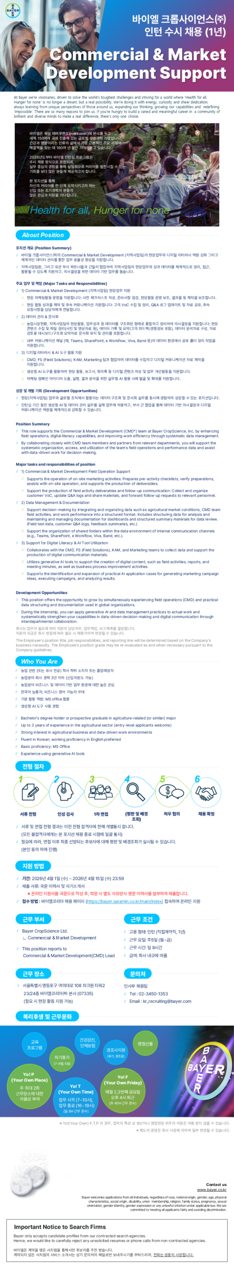 [바이엘 크롭사이언스] Commercial Market_Development_Support [바이엘 크롭사이언스] Commercial Market_Development_Support 2026.04.03 조회수 0 취업지원팀 share facebook twitter kakaotalk 카카오톡 앱이설치된 모바일 기기에서만공유 가능합니다. https://www.syu.ac.kr/?p=242620 share 복사 facebook twitter kakaotalk 카카오톡 앱이설치된 모바일 기기에서만공유 가능합니다. 이전글 글이 없습니다. 다음글 글이 없습니다. 목록