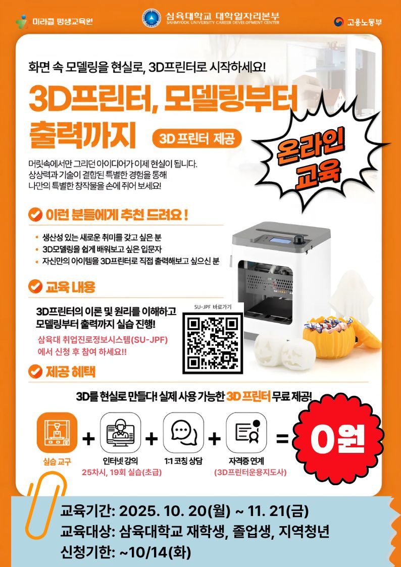 [3D프린터 모델링부터 출력까지] 온라인 교육 OPEN!!(3D프린팅 무료제공)