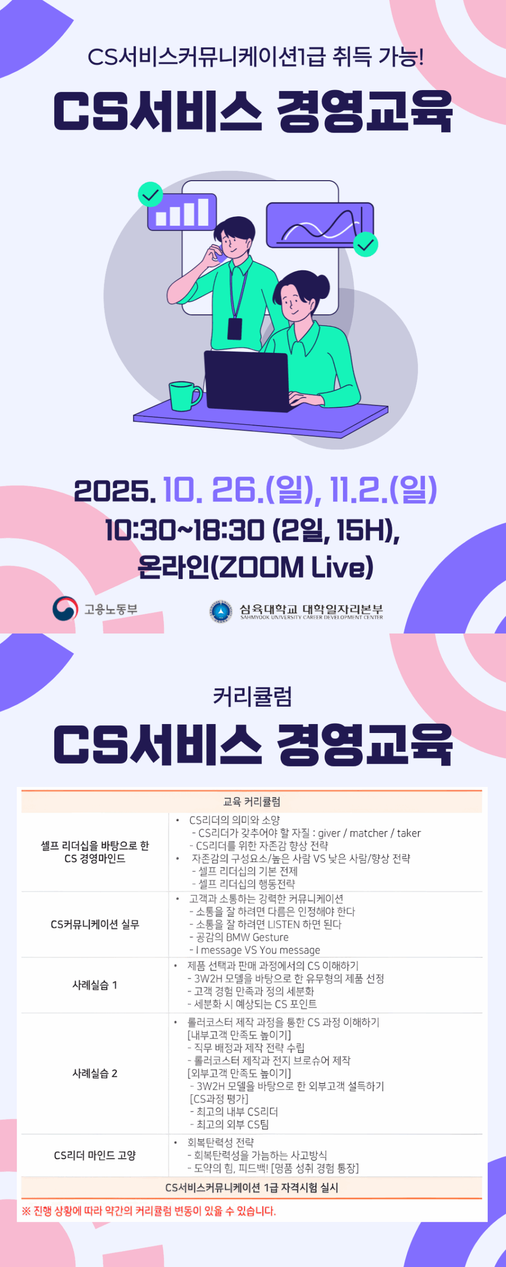 CS서비스커뮤니케이션1급 취득이 가능한, [CS 서비스 경영교육] 과정 OPEN!(ZOOM Live)