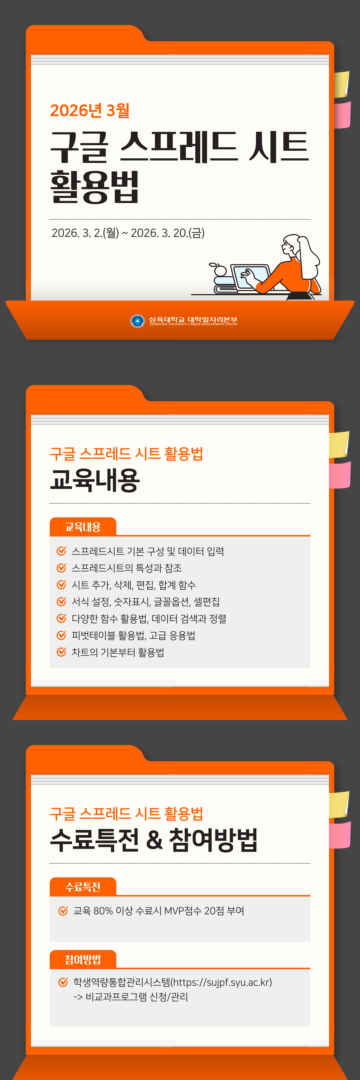 *신청(~3/13):학생통합역량관리시스템(https://sujpf.syu.ac.kr)  -비교과프로그램
