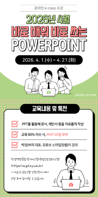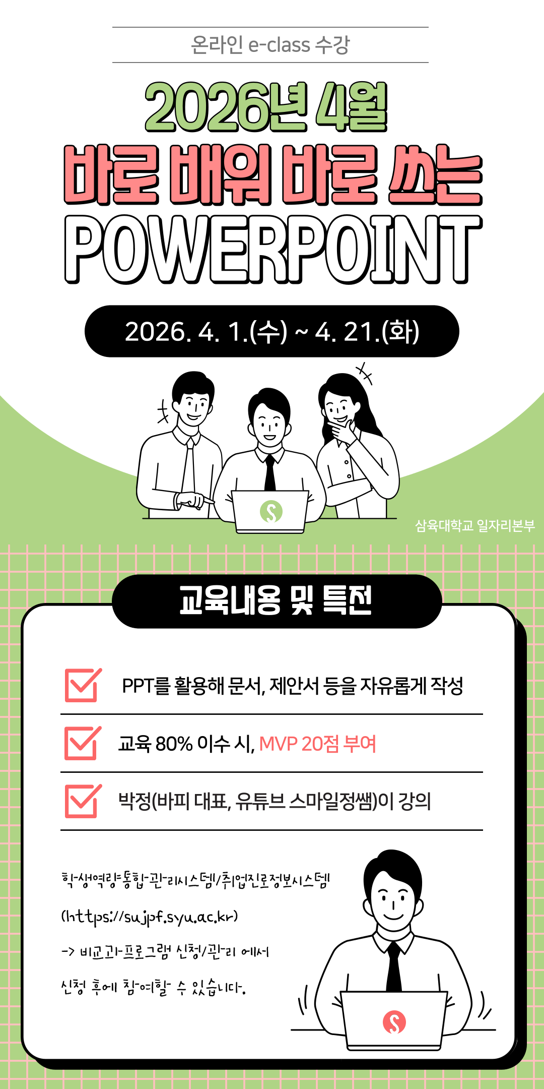 파워포인트 4월 파워포인트 4월 2026.03.20 조회수 0 취업지원팀 share facebook twitter kakaotalk 카카오톡 앱이설치된 모바일 기기에서만공유 가능합니다. https://www.syu.ac.kr/?p=241700 share 복사 facebook twitter kakaotalk 카카오톡 앱이설치된 모바일 기기에서만공유 가능합니다. 이전글 글이 없습니다. 다음글 글이 없습니다. 목록