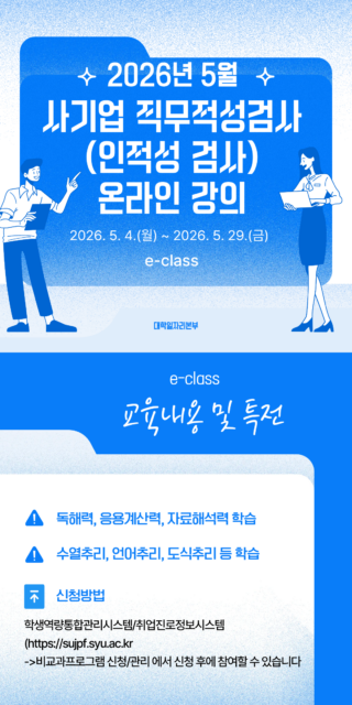 사기업 5월 사기업 5월 2026.04.09 조회수 0 취업지원팀 share facebook twitter kakaotalk 카카오톡 앱이설치된 모바일 기기에서만공유 가능합니다. https://www.syu.ac.kr/?p=243153 share 복사 facebook twitter kakaotalk 카카오톡 앱이설치된 모바일 기기에서만공유 가능합니다. 이전글 글이 없습니다. 다음글 글이 없습니다. 목록
