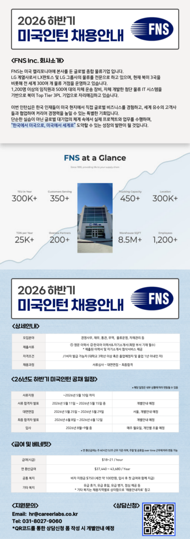 [FNS Inc.] 전미법인 2026년 하반기 각 부문 인턴사원 채용 (~05.10마감)