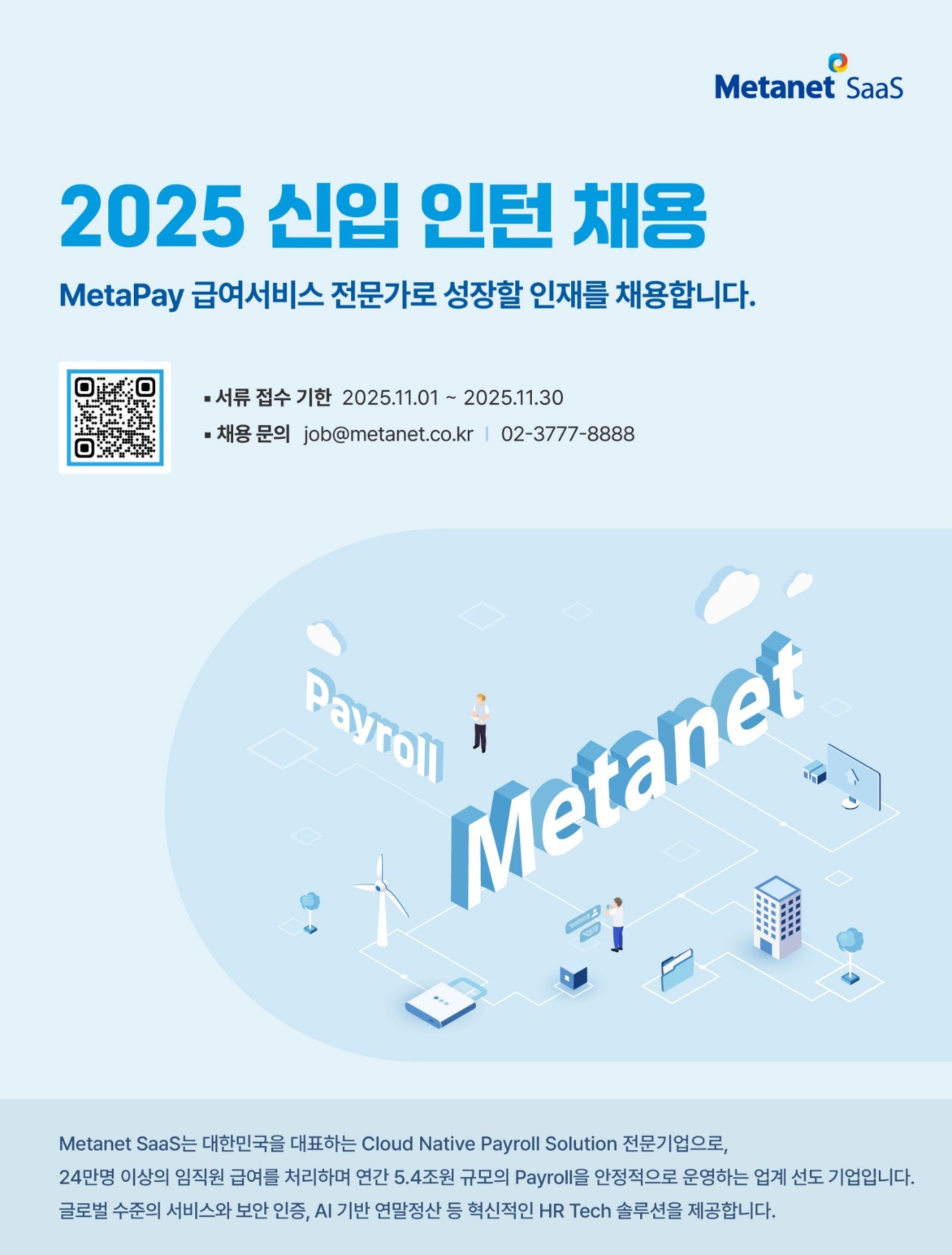 [Metanet그룹] Metanet SaaS 계열사 Payroll 채용~11/27(목) 오전