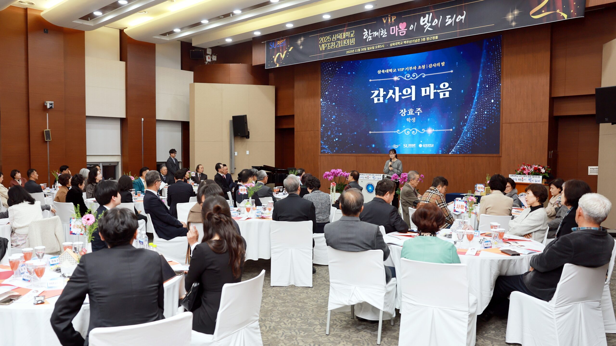 ‘함께한 마음이 빛이 되어’라는 주제로 마련된 이번 행사는 삼육대의 교육 비전에 공감하며 대학의 성장을 꾸준히 응원해 온 국내외 VIP 기부자들을 정중히 초청해, 그간의 성과를 공유하고 감사의 마음을 나누는 자리로 꾸려졌다.