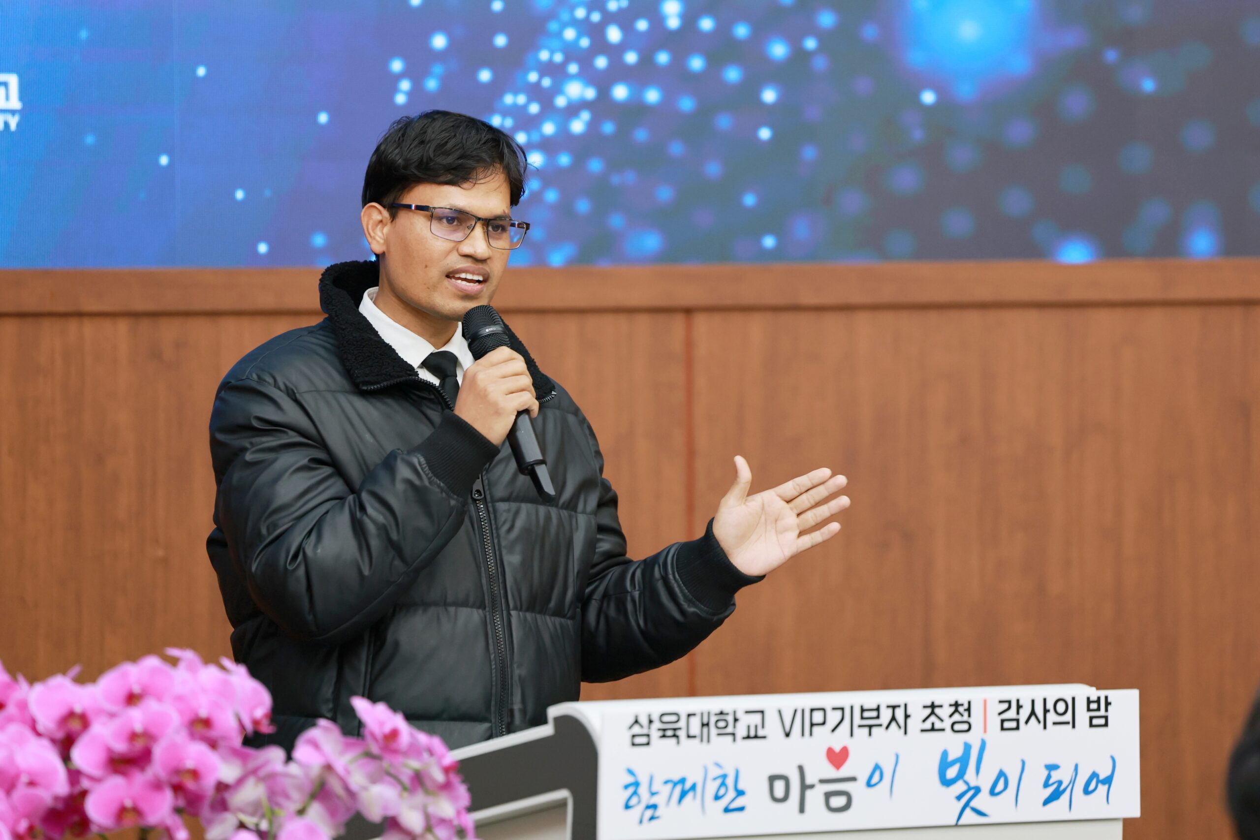 특히 이날 장학생 대표로 방글라데시 출신 유학생 바로이 라훌(대학원 간호학과 박사과정)과 음악학과 장효주 학생은 기부자들에게 직접 감사의 마음을 전하며, 장학금이 학업과 진로에 가져온 변화와 의미를 진솔하게 들려줘 깊은 울림을 줬다.