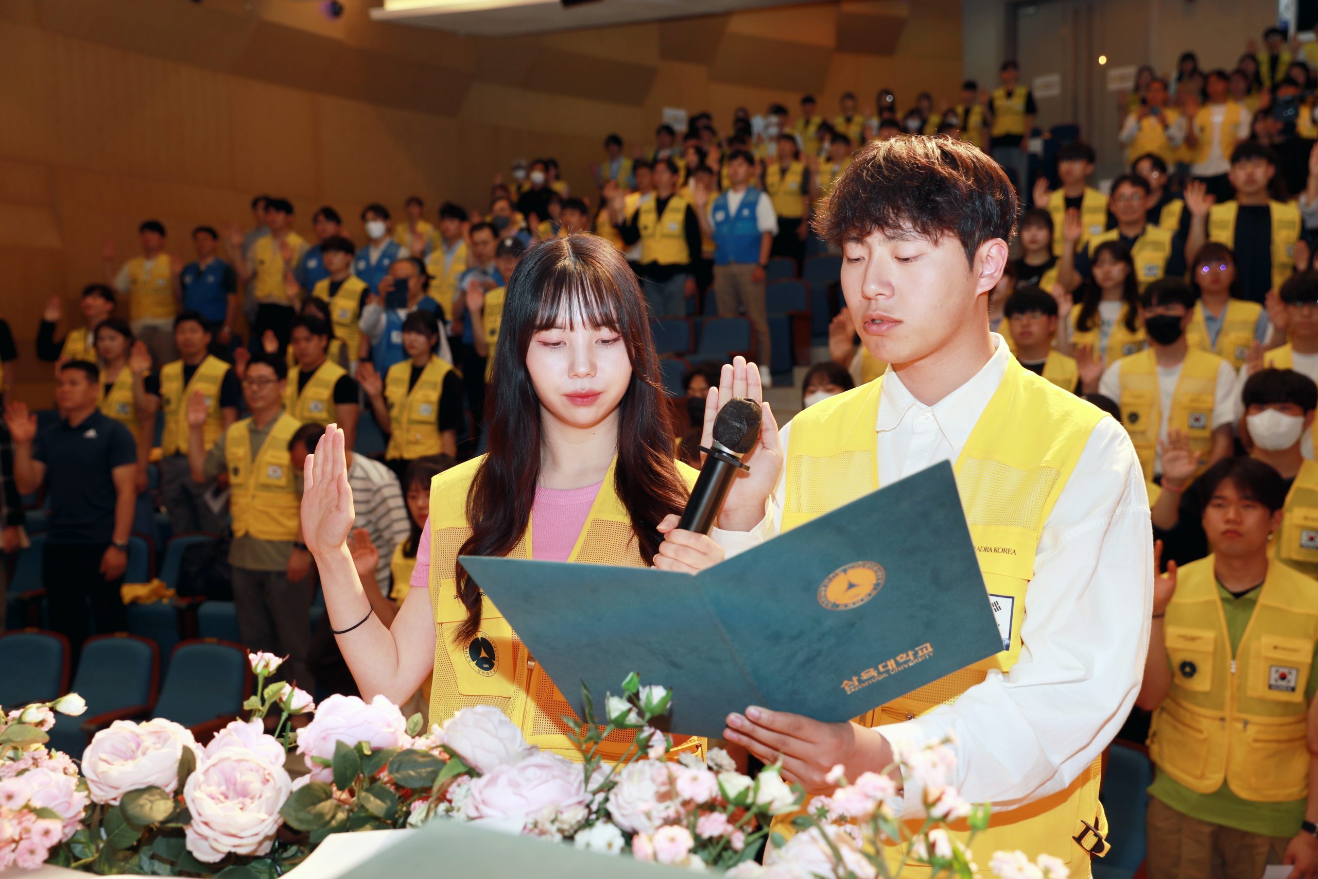 “faithfully engage in volunteer activities, properly practice Sahmyook education, and enhance the honor of the school and the country,” and pledged their dedicated service.