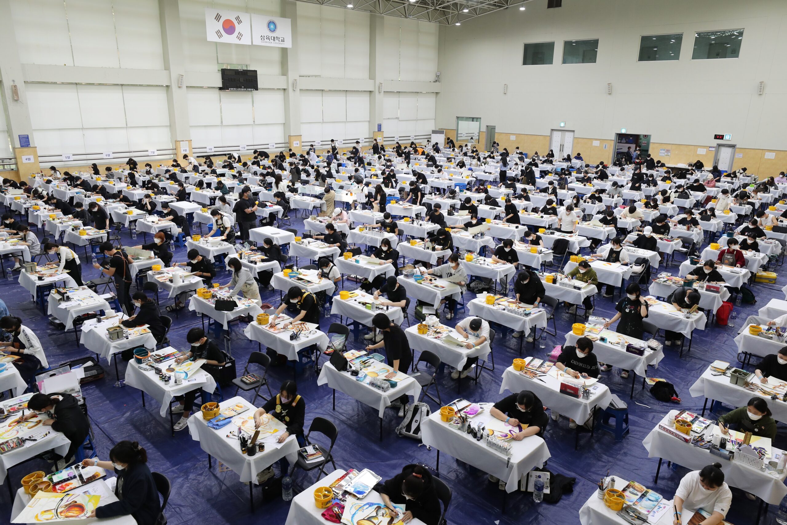 On October 3, Sahmyook University held the performance exam for the 2022 Spring early admission for the Department of Art and Design. Scattered in different buildings on campus, including the main stadium of the gymnasium, applicants were tasked with the following themes to work on: Basic Design, Idea and Expression, and Creative Thinking.