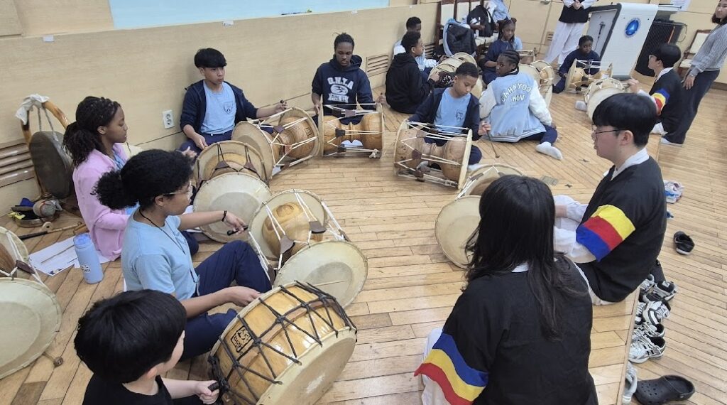 한국문화 수업에서는 태권도, 사물놀이, 잔치국수 만들기, 자개공예 등 여러 활동이 진행되었습니다. 참가 학생들은 단순히 보는 것을 넘어 직접 몸으로 체험하면서 한국 문화를 보다 생생하게 이해할 수 있었습니다. 특히 음식 만들기나 전통 공예 체험은 학생들의 높은 관심을 이끌어냈습니다.