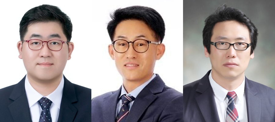 ▲ 왼쪽부터 대학원 경영학과 박사과정 윤덕주, 길민수 원우와 임명성 지도교수