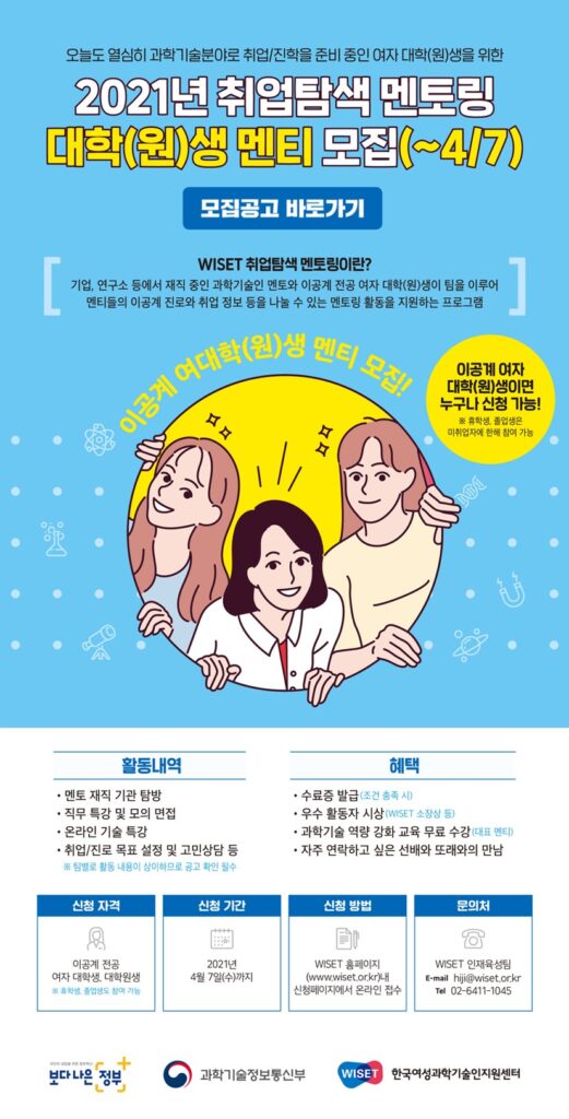 2021년 WISET 취업탐색 멘토링 대학(원)생 멘티 모집 (바이오,생명,생물)