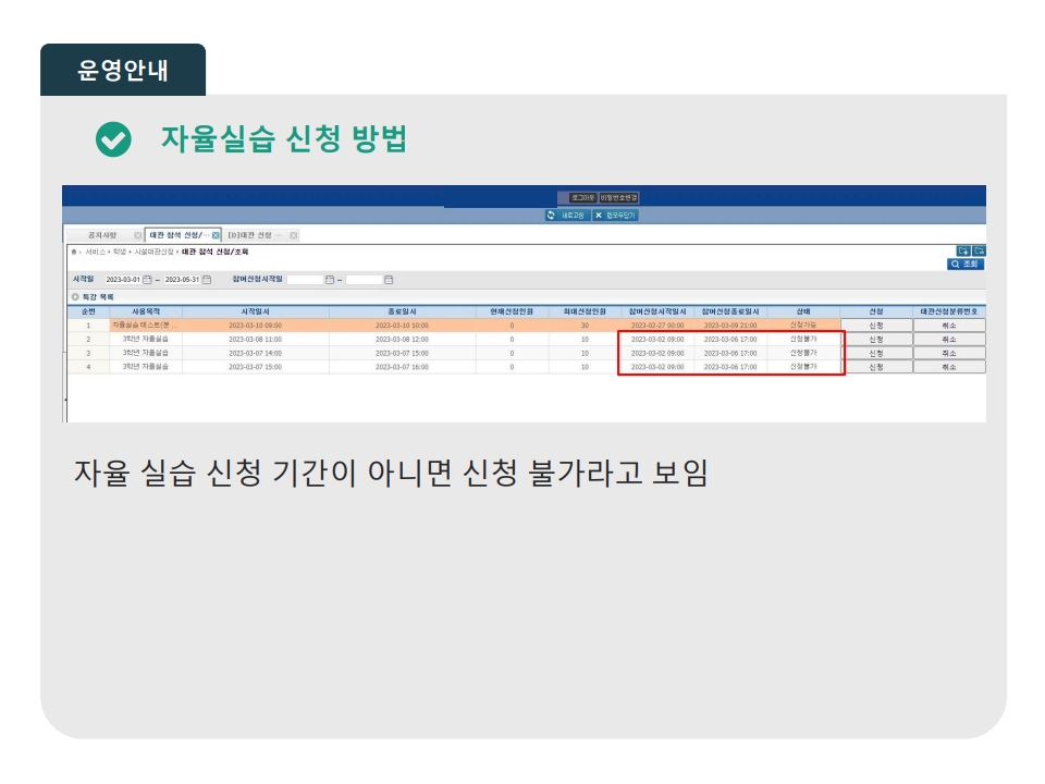 2학년,4학년 자율실습은 3학년이 참여할 수 없습니다.