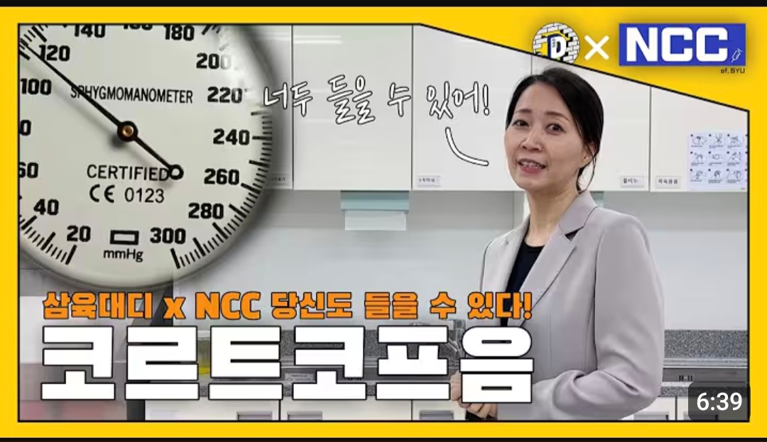 NCC (Nursing Creative Contents)는 영상콘텐츠 동아리로, 간호학 관련 영상콘텐츠 개발을 목적으로 합니다. 영상제작 과정에서 간호사의 필수역량인 협업과 소통능력을, 그리고 시청각 자료 만들기를 통해 환자교육 역량을 강화하고자 합니다. 더불어 전공에 대한 흥미와 이해를 증진시킬 뿐만 아니라 관련 심화학습을 할 수 있도록 돕습니다. NCC의 활동은 시나리오 제작, 촬영 및 연출, 영상 편집으로 구성되어 있으며 모든 회원이 함께 영상제작 과정에 참여하고, 완성된 콘텐츠를 삼육대학교 디지털러닝센터 플랫폼(삼육대디)에 업로드하여 다양한 대상자들과 해당 간호창작콘텐츠를 공유합니다.
