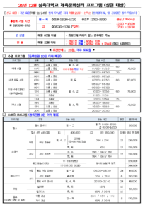 체육문화센터기본프로그램_12월 PRINT 체육문화센터기본프로그램_12월 2025.11.21 조회수 0 sportscenter share facebook twitter kakaotalk 카카오톡 앱이설치된 모바일 기기에서만공유 가능합니다. https://www.syu.ac.kr/sportscenter/%ec%b2%b4%ec%9c%a1%eb%ac%b8%ed%99%94%ec%84%bc%ed%84%b0-%ec%a0%95%ea%b7%9c-%ed%94%84%eb%a1%9c%ea%b7%b8%eb%9e%a8-2025%eb%85%84-12%ec%9b%94/%ec%b2%b4%ec%9c%a1%eb%ac%b8%ed%99%94%ec%84%bc%ed%84%b0%ea%b8%b0%eb%b3%b8%ed%94%84%eb%a1%9c%ea%b7%b8%eb%9e%a8_12%ec%9b%94/ 복사 facebook twitter kakaotalk 카카오톡 앱이설치된 모바일 기기에서만공유 가능합니다. 이전글 글이 없습니다. 다음글 글이 없습니다. 목록 건강한 신체에 건강한 정신이 깃듭니다. 삼육대학교 체육문화센터