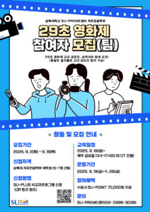 [2025]자유전공학부 29초 영화제 참여자 모집 (팀) 2025.09.01 조회수 135 자유전공학부 SNS Share FACEBOOK X KAKAO https://www.syu.ac.kr/supreme/community/notice/자유전공학부-29초-영화제-참여자-모집-팀/ 복사 Prev [2025]자유전공학부 동아리 신청 Next [2025]자유전공학부 2학기 동아리 신청 목록보기