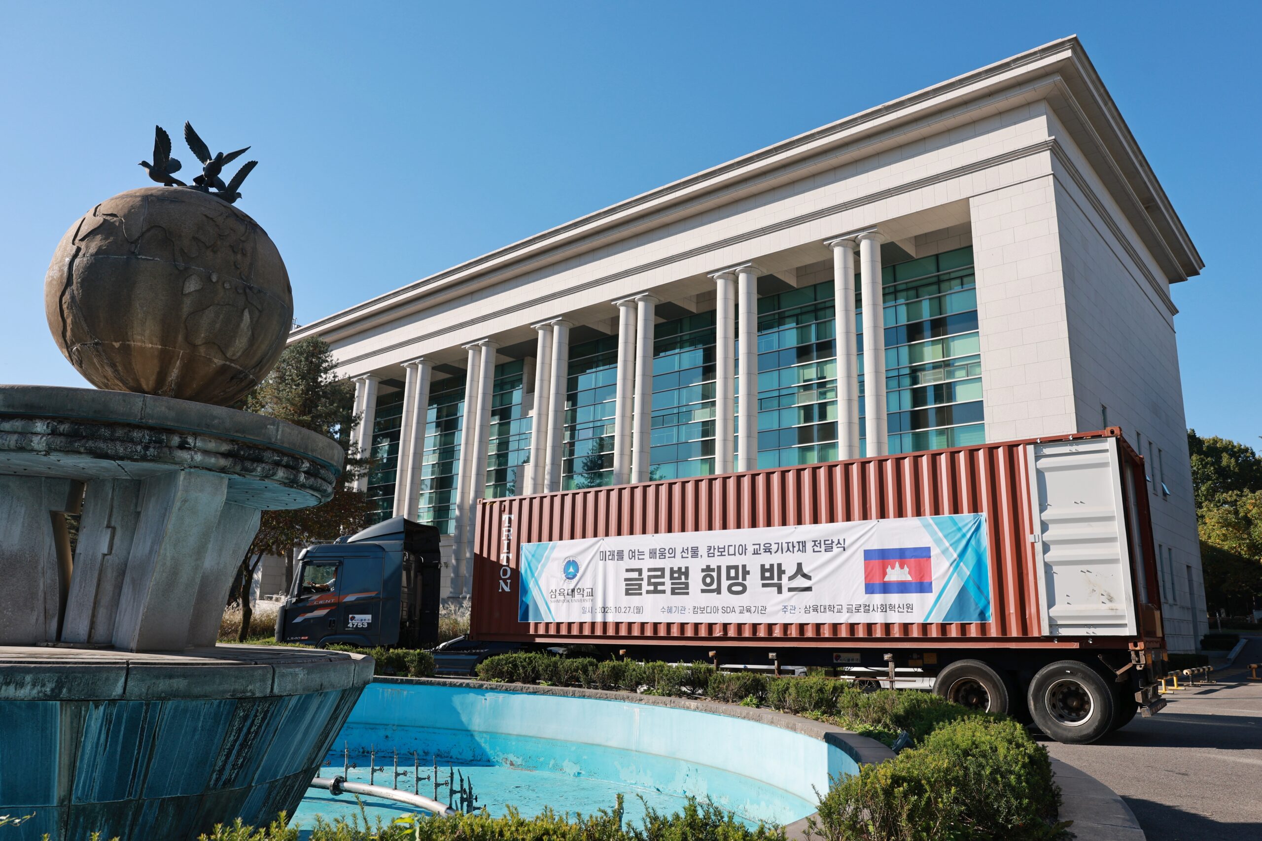 삼육대는 27일 오전 교내 대강당(선교70주년기념관) 앞에서 캄보디아에 후원 물품을 보내는 ‘글로벌 희망 박스(Global Hope Container)’ 선적 행사를 개최했다.