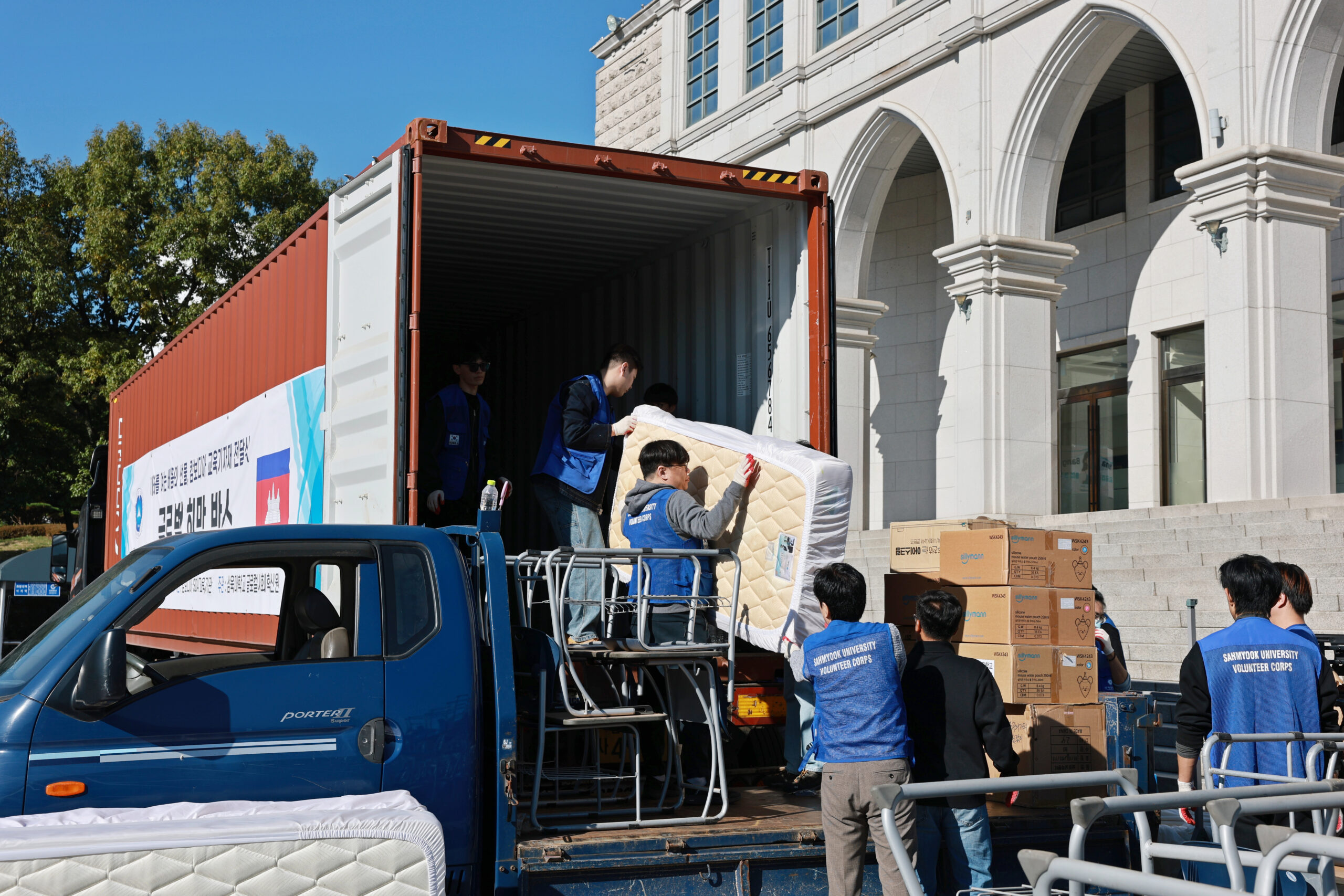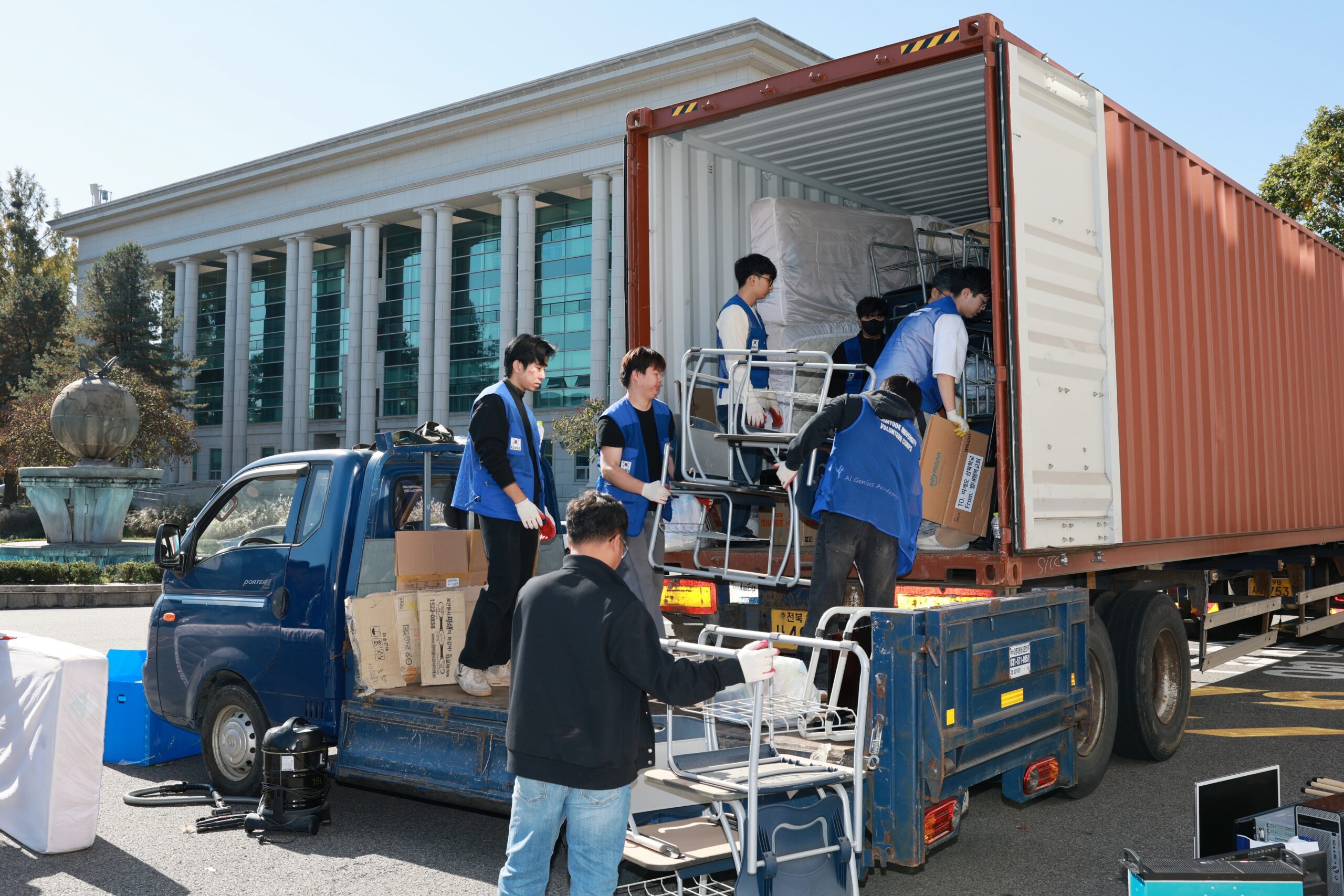이번 행사에는 학생·교수·직원 자원봉사자 60여 명이 참여했다. 봉사자들은 지난 24일과 26일 교내 여러 곳에 흩어져 있던 기증품을 대강당 앞으로 옮기고, 27일 컨테이너 적재 작업을 진행했다.