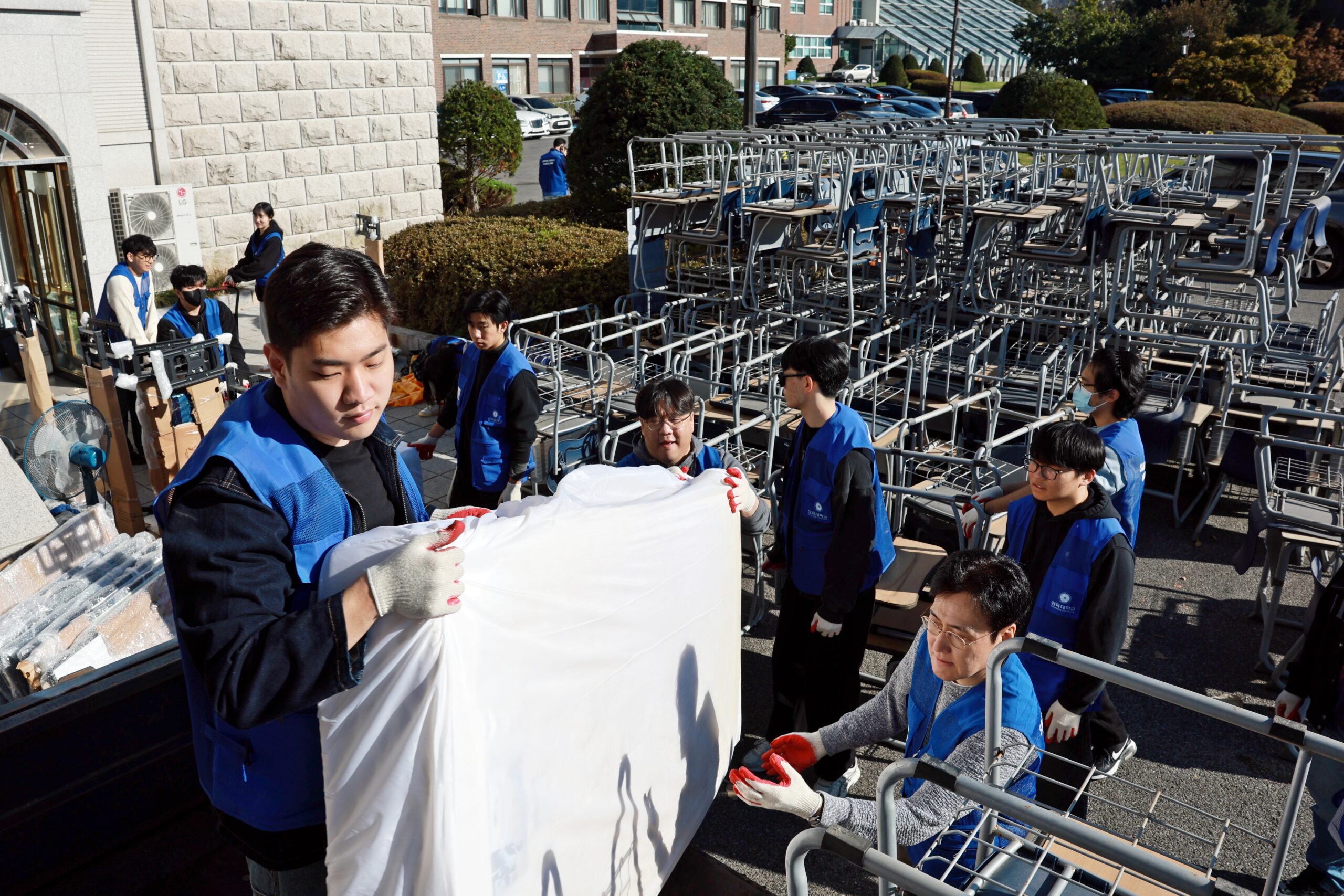 이번 행사에는 학생·교수·직원 자원봉사자 60여 명이 참여했다. 봉사자들은 지난 24일과 26일 교내 여러 곳에 흩어져 있던 기증품을 대강당 앞으로 옮기고, 27일 컨테이너 적재 작업을 진행했다.