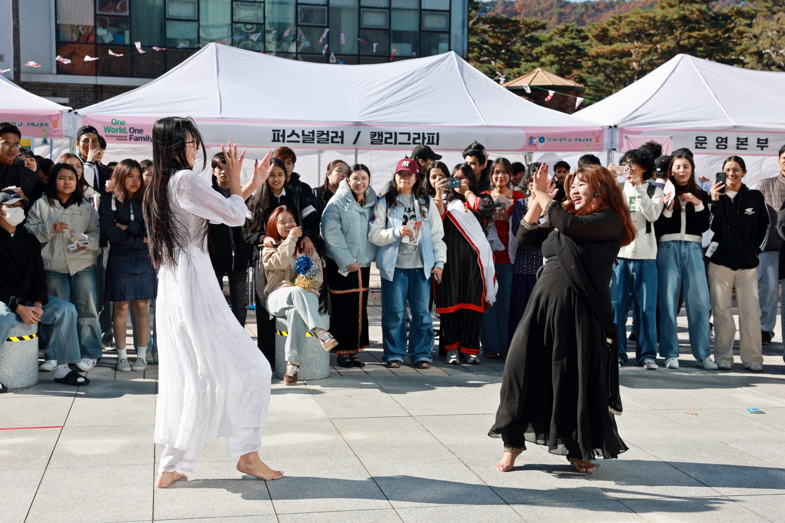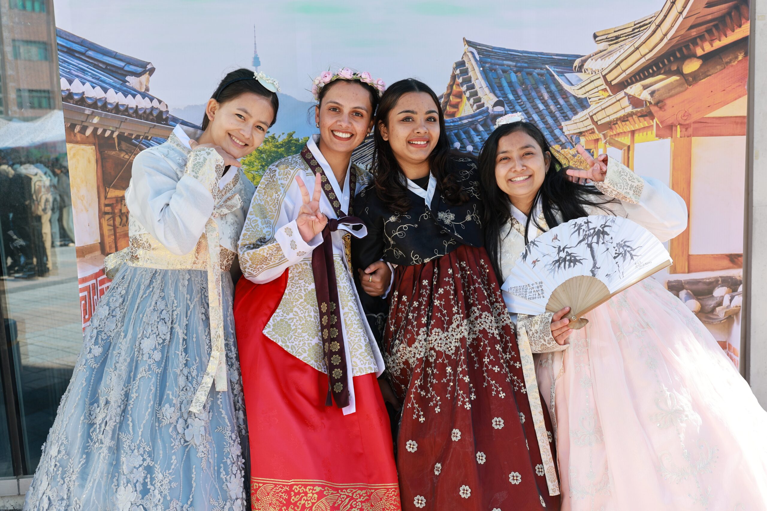 현장에는 △한복 체험 및 포토부스 △캘리그라피 한국이름 명함 만들기 △퍼스널컬러 진단 △브라질·대만·알제리·미얀마·러시아 등 국가별 부스 △각국 전통의상·음식·문화체험 △말레이시아 전통춤 공연 등 다채로운 프로그램이 운영됐다.