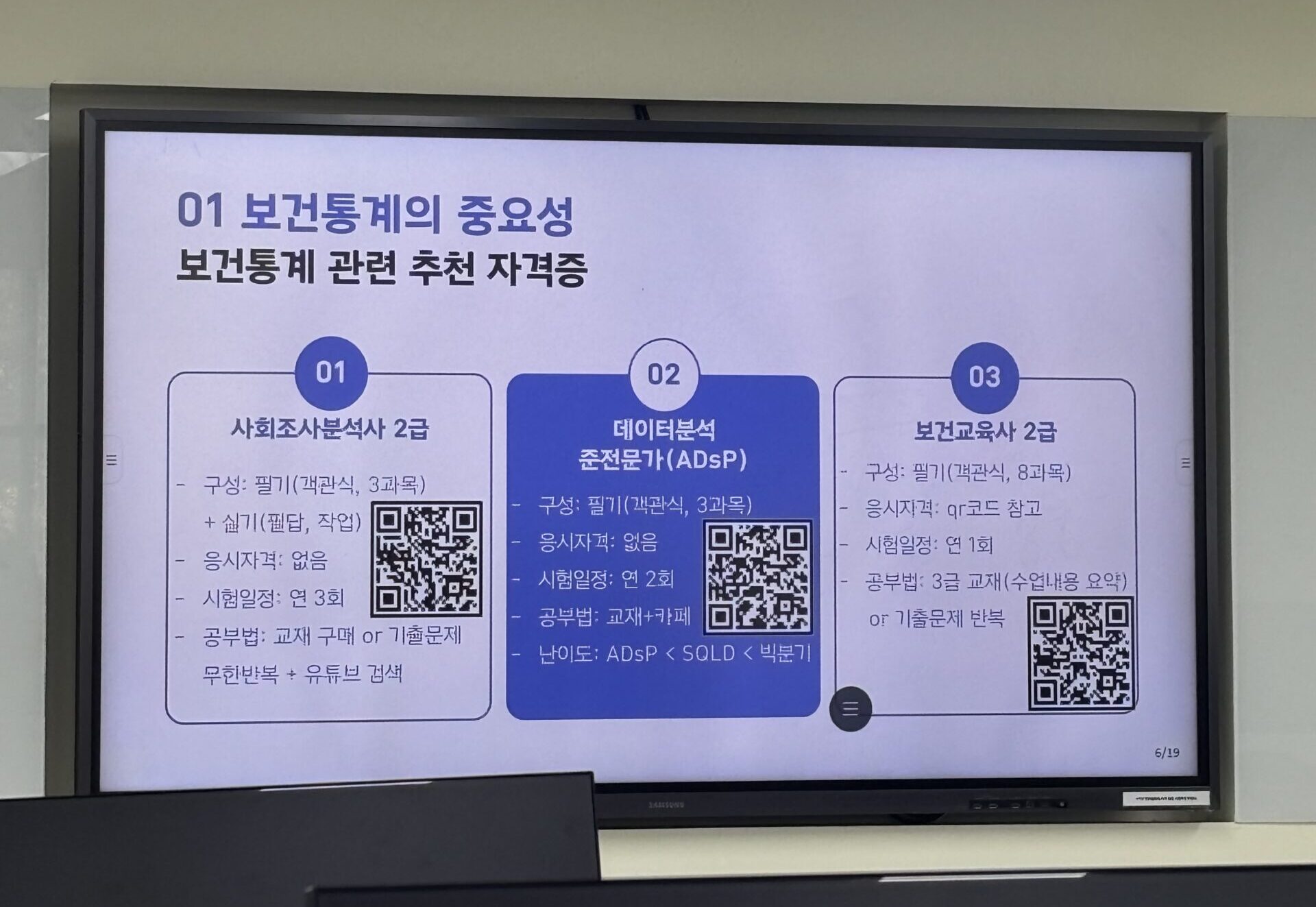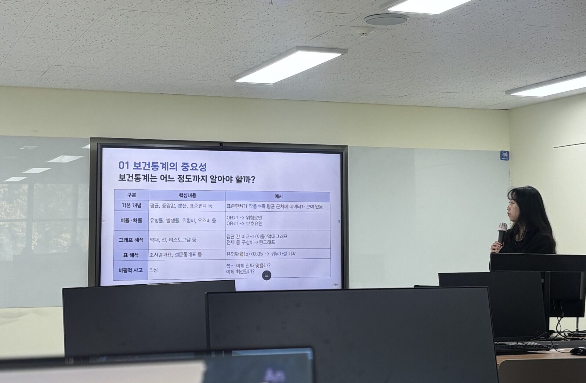 이번 선배 특강에서는 보건통계의 중요성부터 자격증, 설문조사 제작 팁, 학교생활, 그리고 진로 이야기까지 실전 조언이 가득했습니다.
