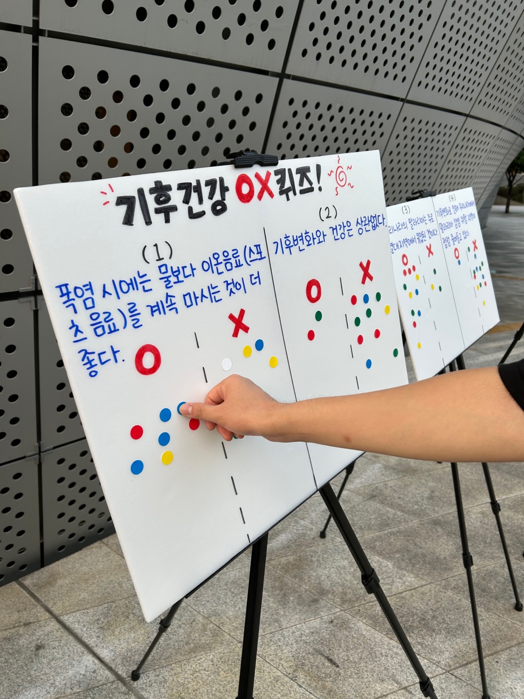 마지막 활동은 오프라인 연합 캠페인이었습니다. 동대문역사문화공원에서 시민들을 대상으로 기후위기 OX퀴즈, 뽑기 이벤트, 한줄적기 참여 활동을 진행했습니다. 시민분들의 실제 반응을 보며 건강정보 소통의 의미를 느꼈던 활동이었습니다.